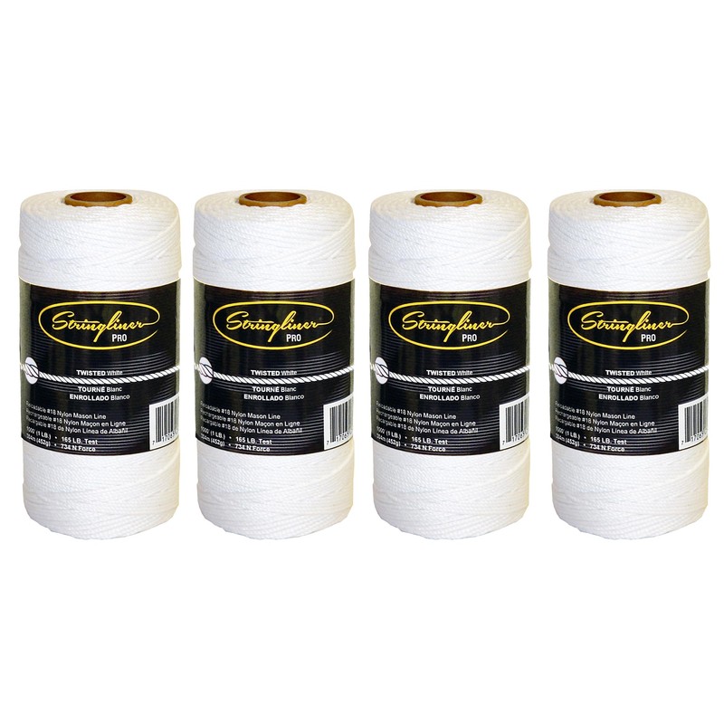 Stringliner 35703 Mason’s Line Replacement Rolls – 1 Lb. #18 Construction Replacement Roll Twisted White 1080'. (4 Pack)