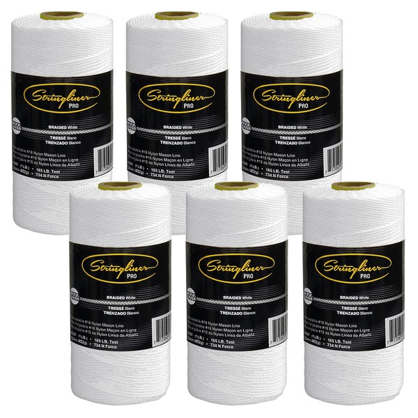 Stringliner 35753 Mason’s Line Replacement Rolls – 1 Lb. #18 Construction Replacement Roll Braided White 1000'. (6 Pack)