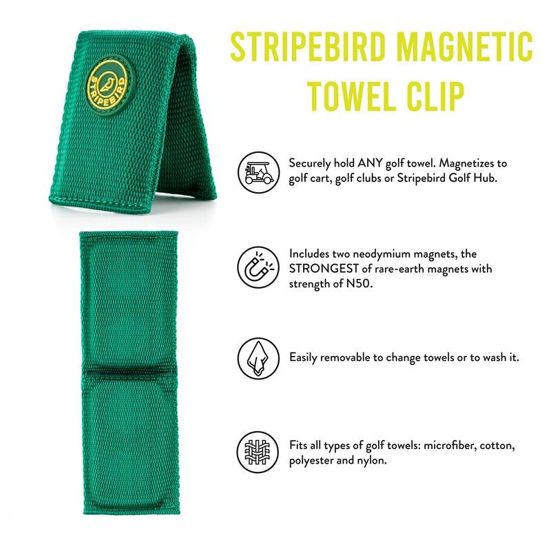 Stripebird - Magnetic Clip for Golf Towel (Fairway Green) - (Highest Strength Magnet) - Easily Access Golf Towel While You Golf - Attaches to Golf Cart, Clubs or Golf Hub - Removable from Towels