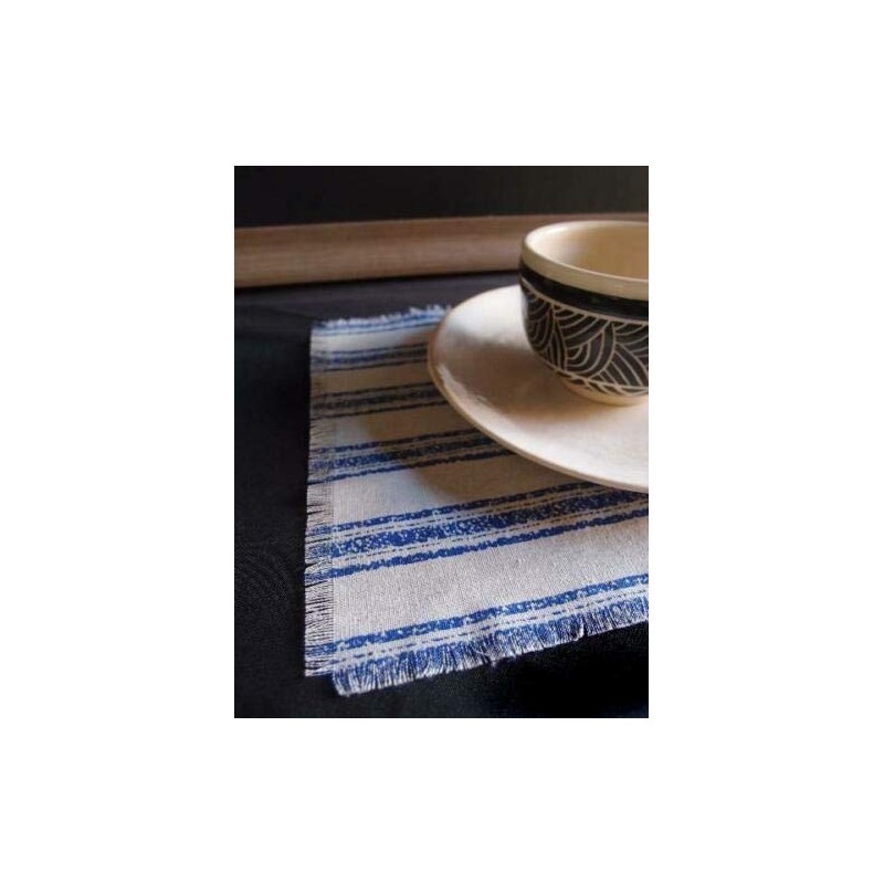 Striped Linen Napkins with Fringed Edges (12 Pack) 15.5" x 11.5" (Ocean Blue Stripes./k)