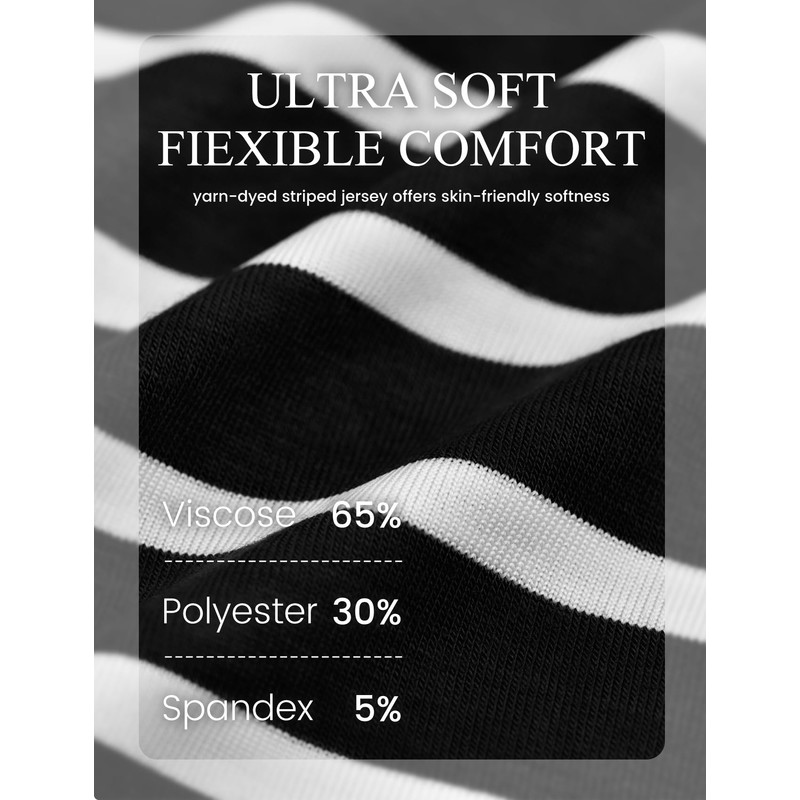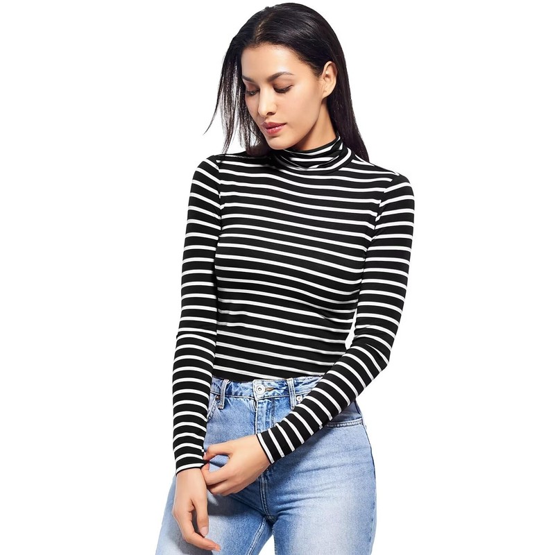 Striped Turtleneck Women Long Sleeve Fitted Underscrub Shirts Lightweight Pullover Tops(Black/White,S)