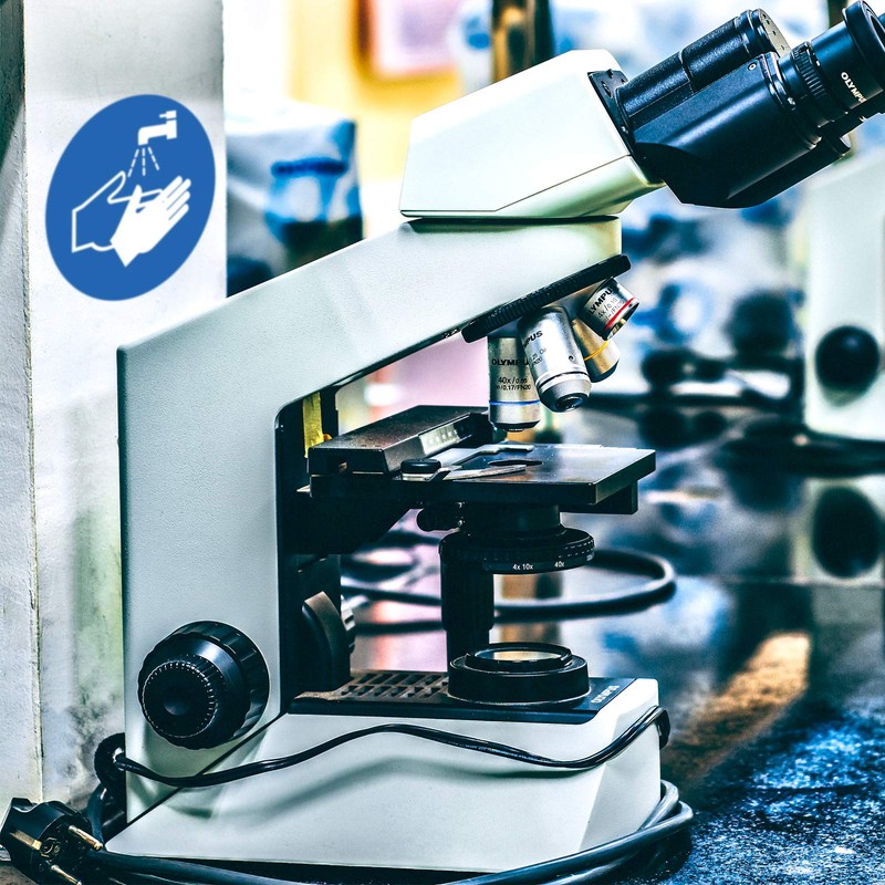 - 10 x hand disinfect/wash stickers, diameter 9.5 cm, sign with slotted back