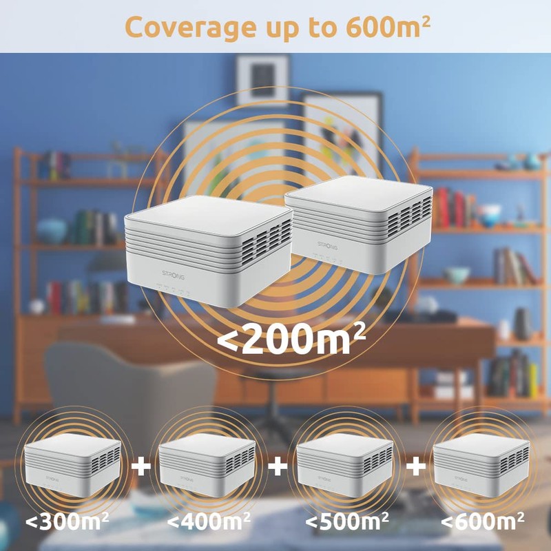 - The MESHKITAX3000 Wifi 6 Strong enables the creation of a comprehensive WiFi network throughout the entire house, ensuring consistent coverage and eliminating areas with weak WiFi signals. These units employ mesh technology (MESH) to establish a unified and reliable network. WiFi devices connected to this network will seamlessly switch between the units, optimizing the connection speed automatically.