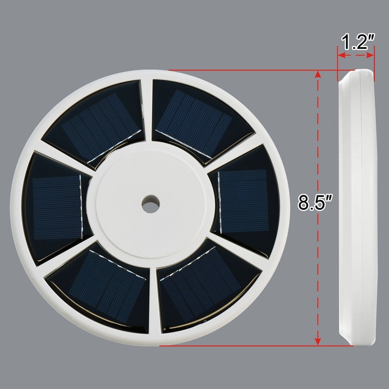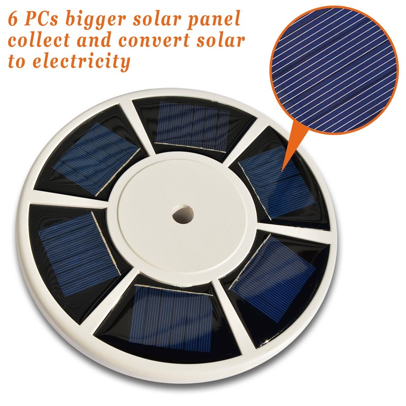 -Solar powered: 6 sun energy panels( 6V, 300mA) absorb the sun energy to transfer it to power stored in the rechargeable batteries.