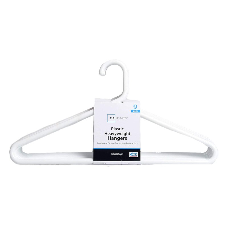 - Mainstays Heavy Weight 9 Count White Plastic Hangers