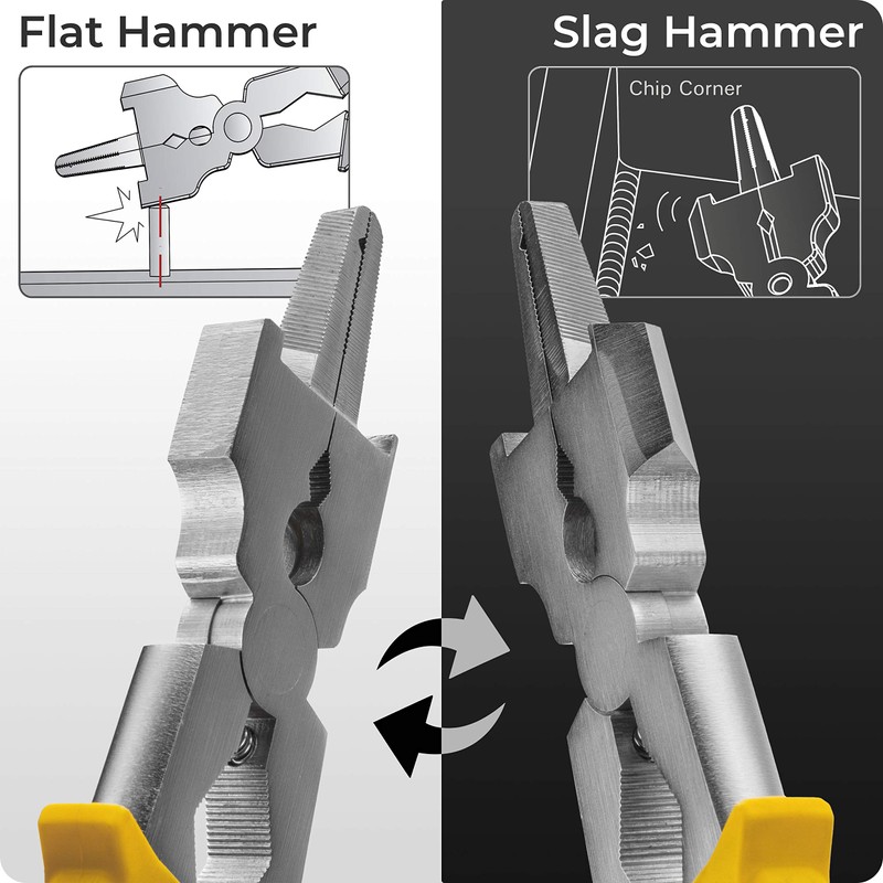 Deluxe+ Mig Welding Pliers, Slag Hammer, Flat Face Hammer, Scraper, Fine/Coarse Files, Side Pull V-Notch, Ergonomic Grip, Heat Treated, 8”, PM25