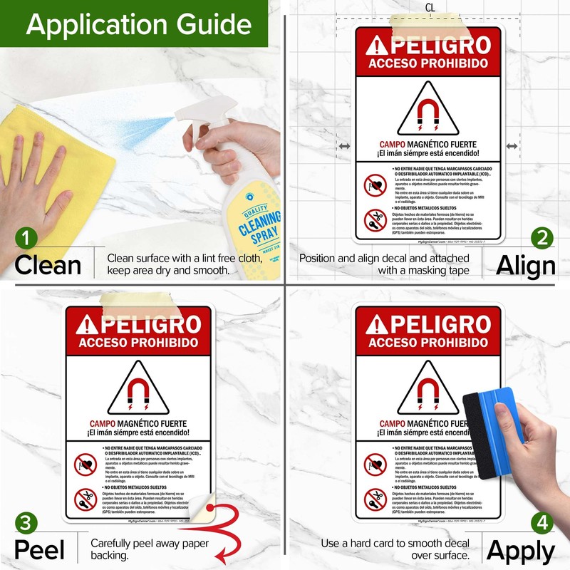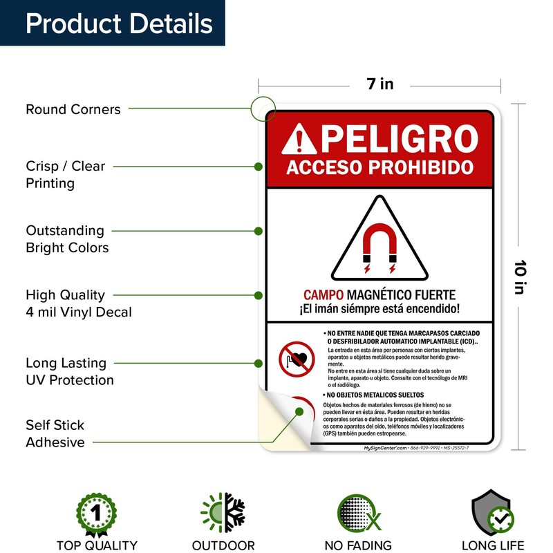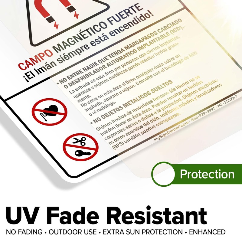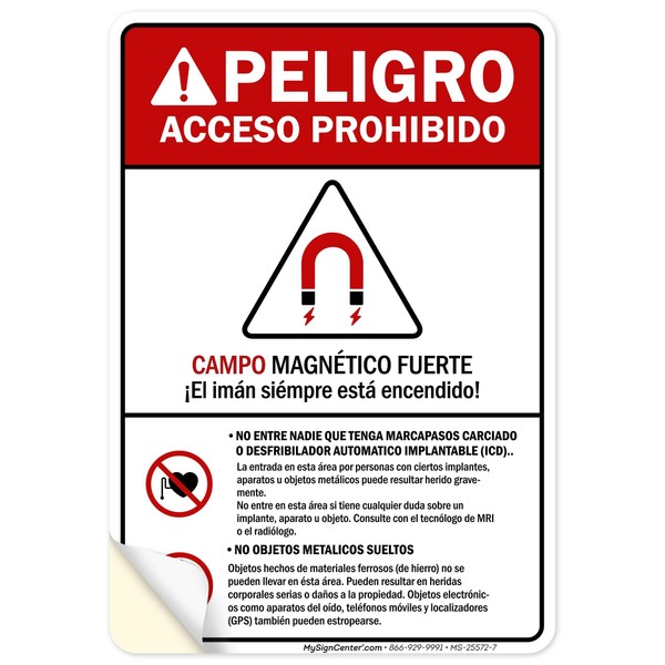 Strong Magnetic Field The Magnet Is Always On Spanish ANSI Sign, 10x7 Inches, 4 Mil Vinyl Decal Stickers Weather Resistant, Made in USA by My Sign Center