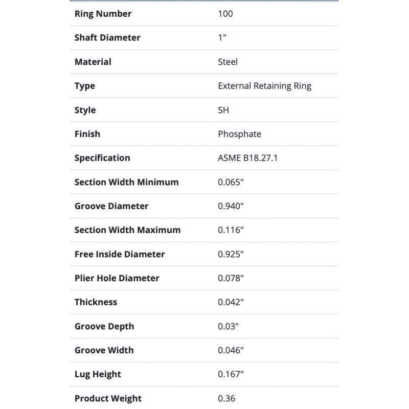 stronghold 100 Pack New Stronghold 1" External Retaining Ring Phosphate Finish Ships FREE