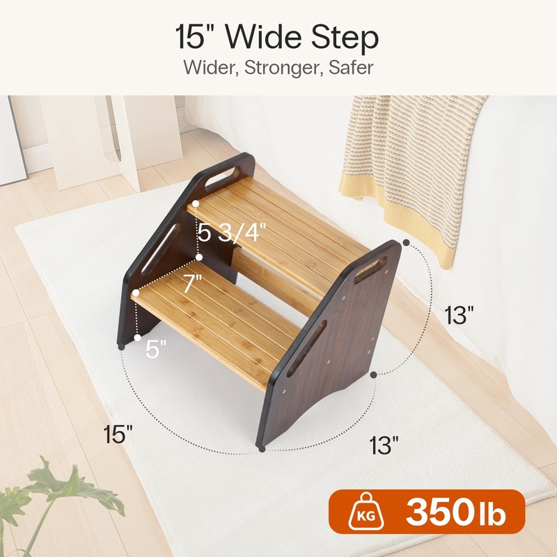 - Heavy-Duty Bamboo Construction – Crafted from 100% natural bamboo, this 2-step stool supports up to 350 lb, delivering long-lasting strength and stability for both kids and adults.