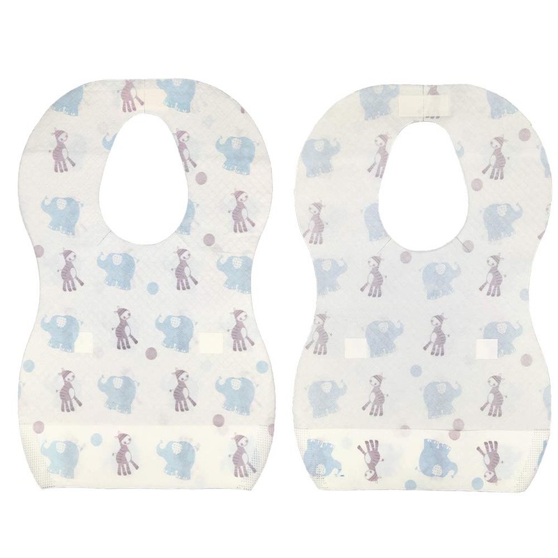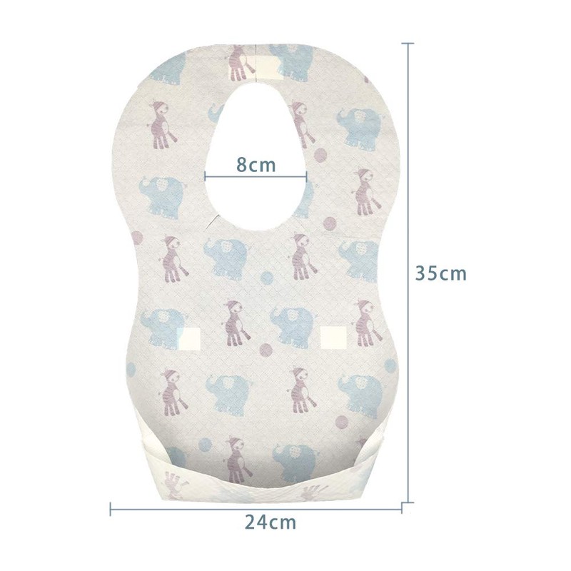 1,Color:60pcs Size:35cm*24cm,Neck Width:8cm,Suitable for 1-4 years old baby. 2. The construction of high quality non-woven fabric, absorbent paper and waterproof film absorbs water and dirt in an instant, leaving it clean. 3. How to Use: 1. Open the dotted line of the bib, and put it on the baby's neck. 2, Peel off the cover of the adhesive sticker on the neck and stick it in the appropriate position. 3. Fold the back pocket back to the baby's chest and adjust the shape of the pocket. 4. Peel off the sticker on the chest and stick it to your baby's clothes and fix the bib. 4. Tips 1. If your neck is tight, please tear it along the openings on both sides. 2. When it is difficult to wear with a thick baby clothes, you can peel off the adhesive sticker around the neck and stick it directly to the baby's shoulder.