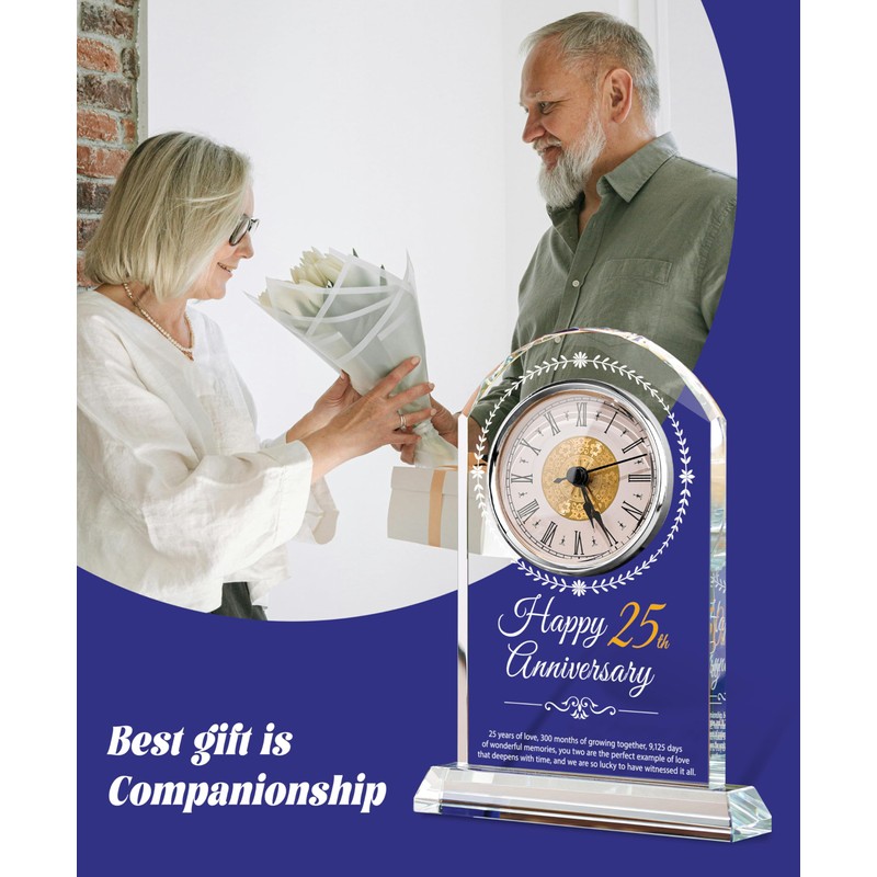 Sttokilly 25th Wedding Anniversary K9 Crystal Quartz Clock,25 Years of Marriage Gift,Happy Silver Anniversary Decoration Gift,for Parents,Grandparents,Couple