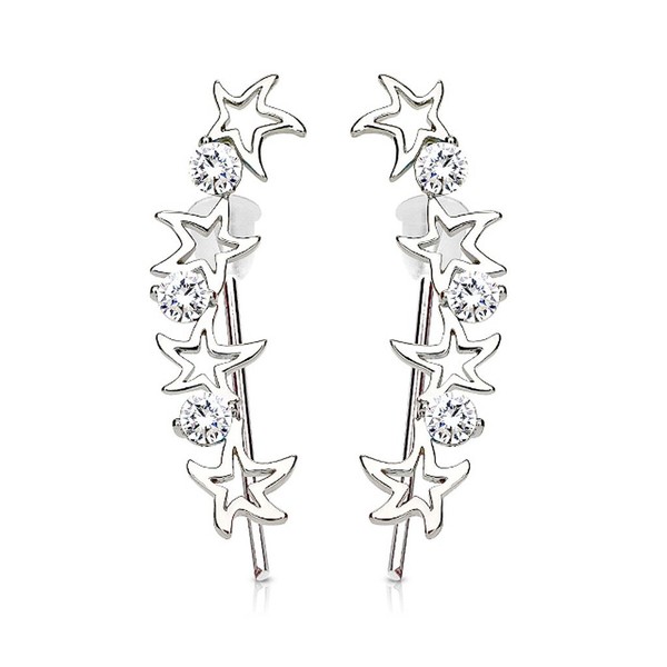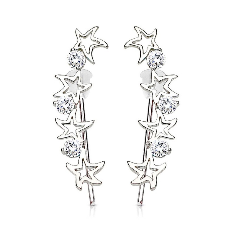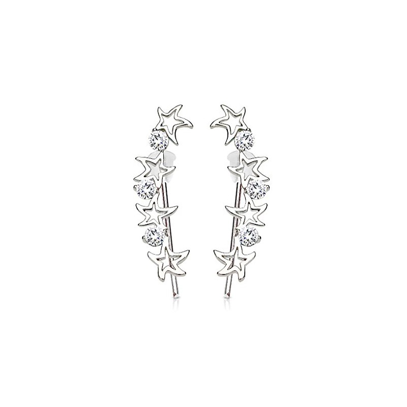 Stud Earrings Feather Cross Stars Leaf Branch Ear Crawler Women Autiga®, Brass