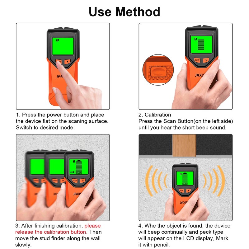 • Wide Use: our wood detector for wall is a versatile, reliable, and tool that can make any job more efficient and effective. This stud detector quickly locates wood, metal, and AC wires hidden in the walls, floors, and ceilings of the house. Helping you avoid danger when hanging and installing TV mounts photo frames, wall cabinets, garage racks, shelves, bathroom handles and other decorations. Give the gift of convenience and comfort with this practical gadget