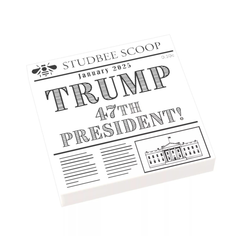 Studbee NEW Custom Printed Minifig Newspaper - Trump 47th President - 2x2 White Tile