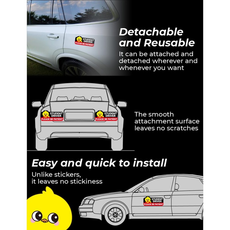 Student Driver Car Magnet Cute Chick - Weather - Resistant Colorful - Rectangular Various Cute Characters/Must-Have for Student Drivers!