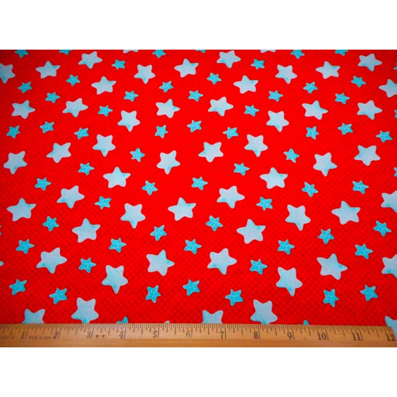 Studio E Patriotic Fabric By The Yard SALE Aqua Stars Red Dots on Red Premium Cotton #C