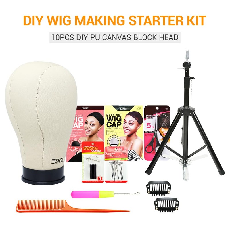 STUDIO LIMITED Mannequin Head Tripod Stand Adjustable with PU Canvas Block Head 10 Pcs (23 Inch)