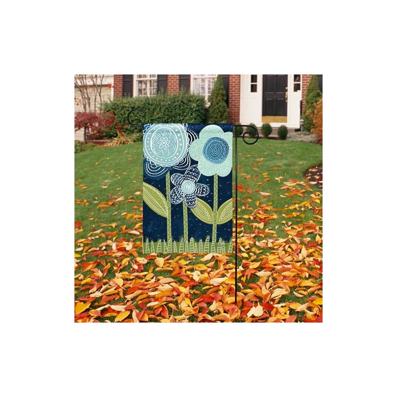 Studio M Double Sided Folk Art Floral Outdoor Flag Decoration for Landscaping, Gardens, and Yards, Standard 13 x 18 Inch Fade Resistant Solar Silk Polyester Fabric Blue Flowers
