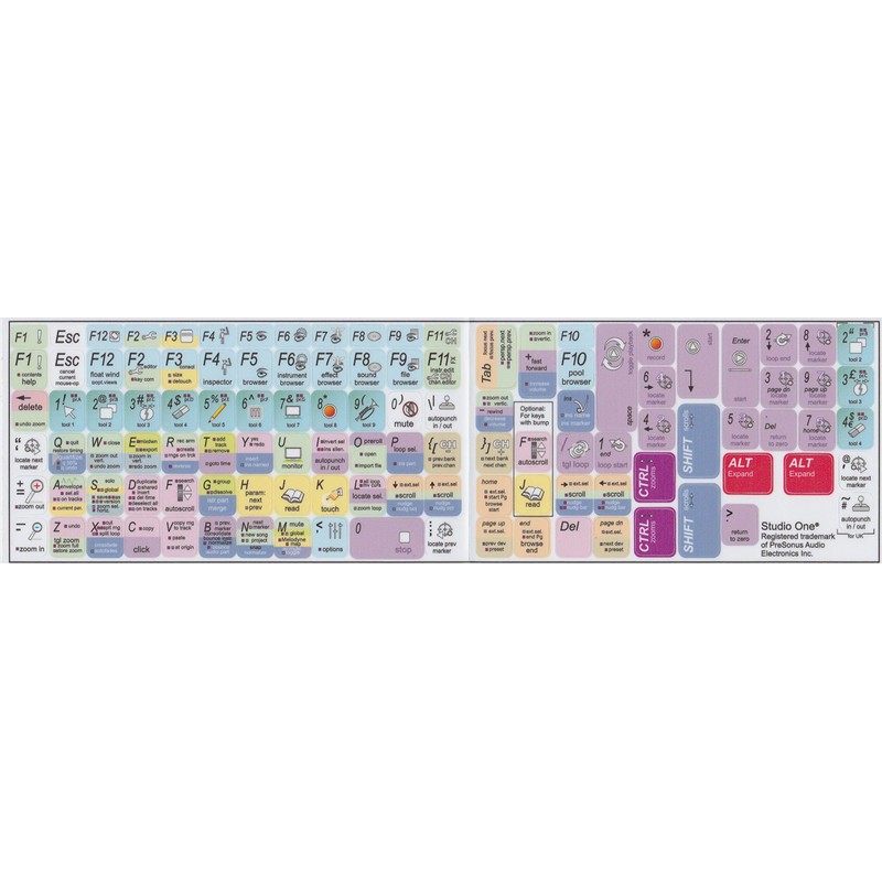- Keyboard Labels Shortcut for Studio One are laminated and made with typographical method on high-quality Matt Vinyl using non-toxic materials. Thickness - 80mkn. Made in USA.