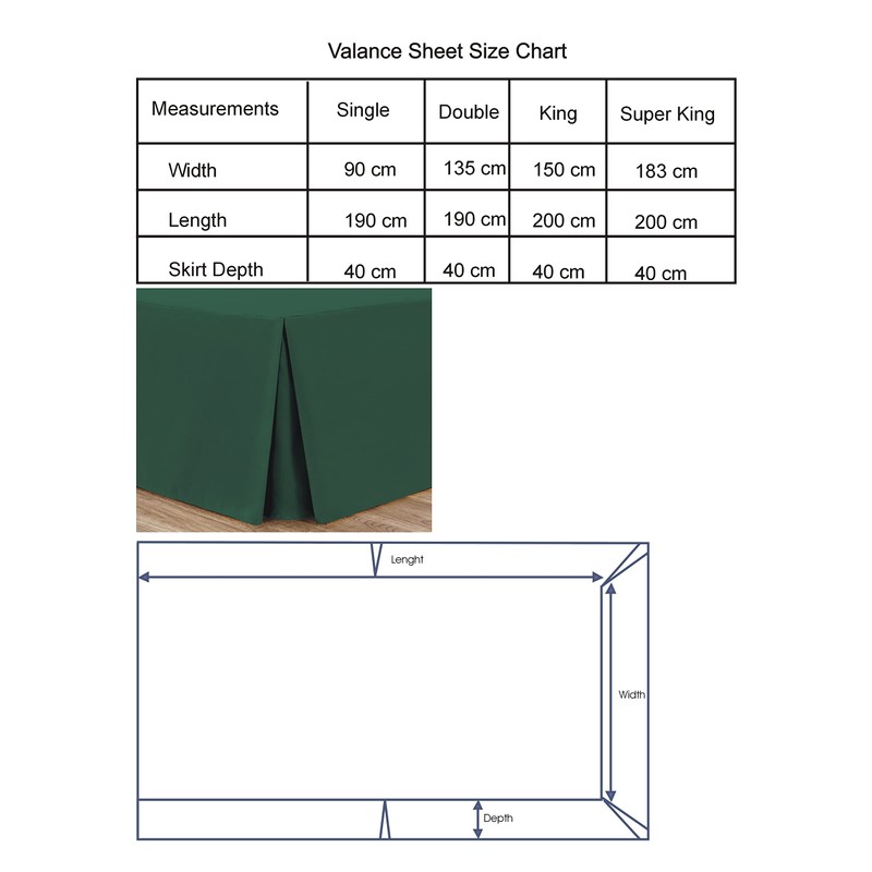 - ✯ Size & Dimension: Bottle Green King Size Box Pleated Base Valance Sheet with following dimensions 150x200cm + 40cm Skirt.