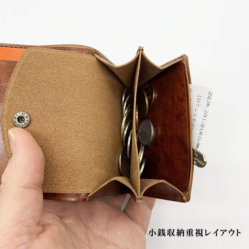 • A full-spec wallet that can hold everything you need. Holds approximately 15 coins, 12 bills, 8 cards, and receipts and keys. This wallet has excellent storage capacity, but its size is very compact. It is perfect for carrying as well as a mini bag for your jacket chest pocket or jeans pocket