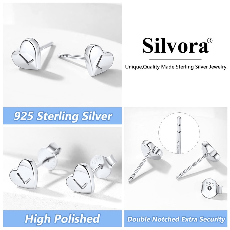 Studs Earrings for Women, S925 Sterling Silver Heart Initial Letter Z Small Tiny Earrings for Girls Ladies Mum Daughter Sisters Friends Lover Hypoallergenic Silver Jewellery with Gift Box