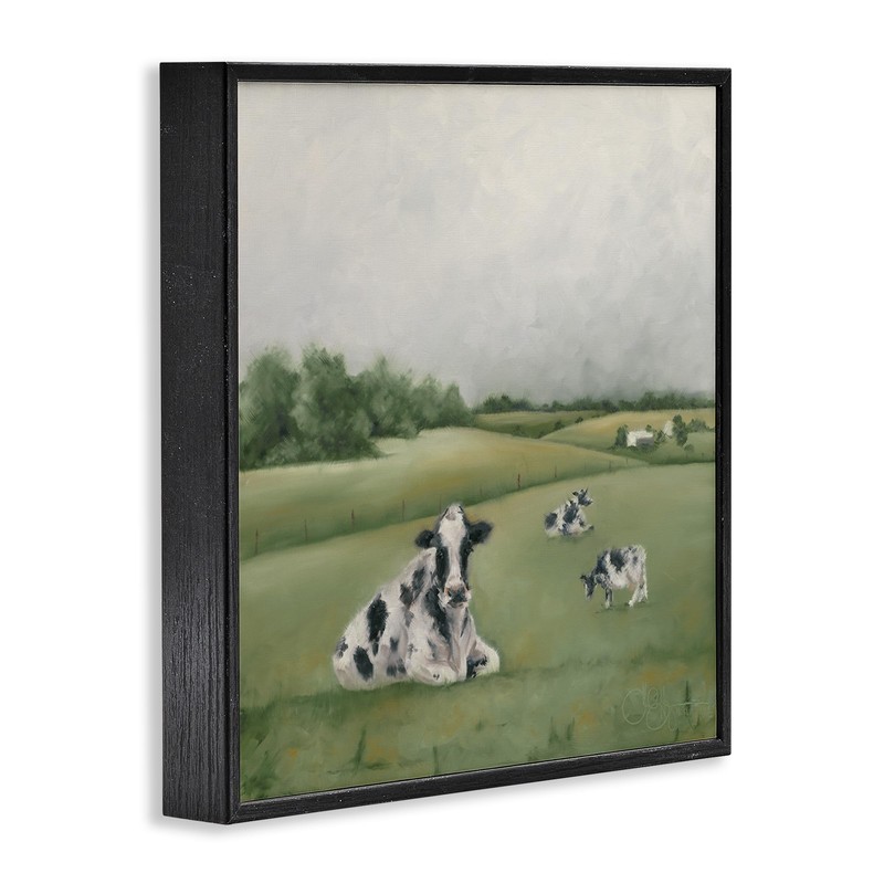 Stupell Industries Dairy Cows Grazing in Rolling Green Field Farms Wall Art, 17x17, Black Framed