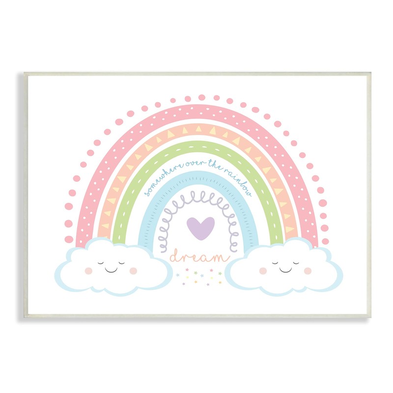 Stupell Industries Dream Over The Rainbow Smiley Face Clouds, Designed by AE Design Wall Plaque, Pink