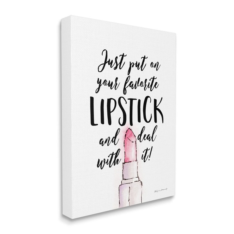 Stupell Industries Favorite Lipstick Deal with It Phrase Cosmetic Fashion, Designed by Stephanie Workman Marrott Canvas Wall Art, 30 x 40, Off- White
