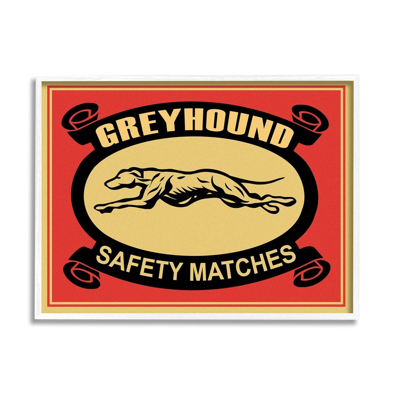 Stupell Industries Grayhound Safety Matches Yellow Red Vintage Advertisement, Designed by Mark Rogan White Framed Wall Art, 11 x 14
