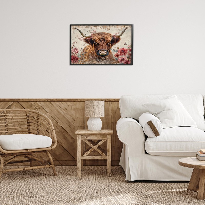 Stupell Industries Highland Cow in Spring Black Framed Giclee Wall Art Design by LSR Design Studio, 24 x 16