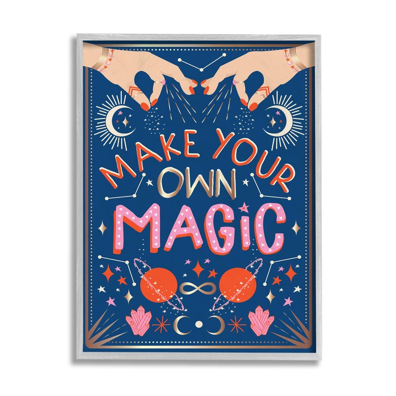 Stupell Industries Make Your Magic Phrase Fashion Hands and Constellations, Design by Hannah Heemsbergen Grey Framed Wall Art, 11 x 14, Blue