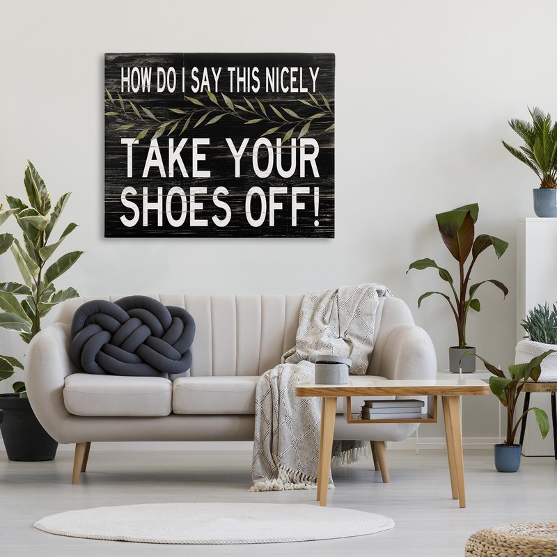 Stupell Industries Take Your Shoes Off Phrase Funny Home Welcome Sign, Designed by Cindy Jacobs Wall Art, 36 x 48, Canvas