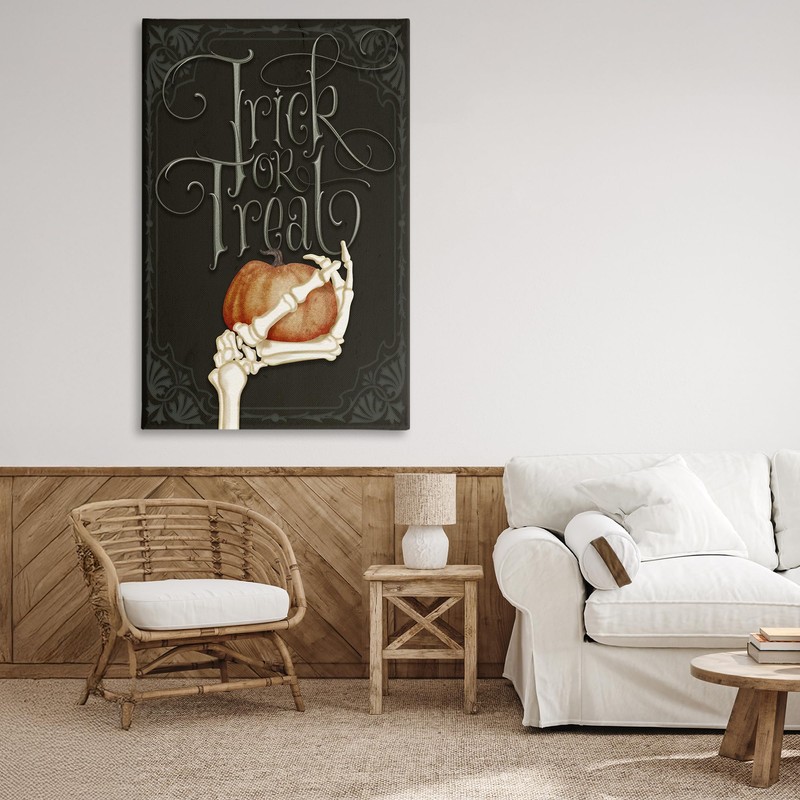 Stupell Industries Trick Or Treat Skeleton Hand Canvas Wall Art design by Nicole Tamarin, 45 x 30