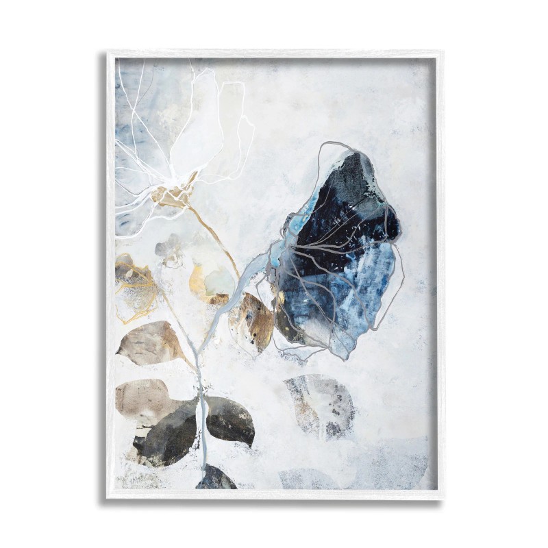 Stupell Wilting Flower Abstract Still Life Modern Blue Flower Framed Wall Art -