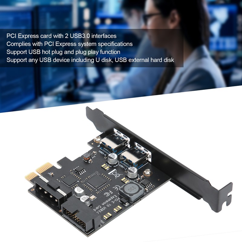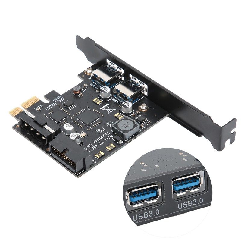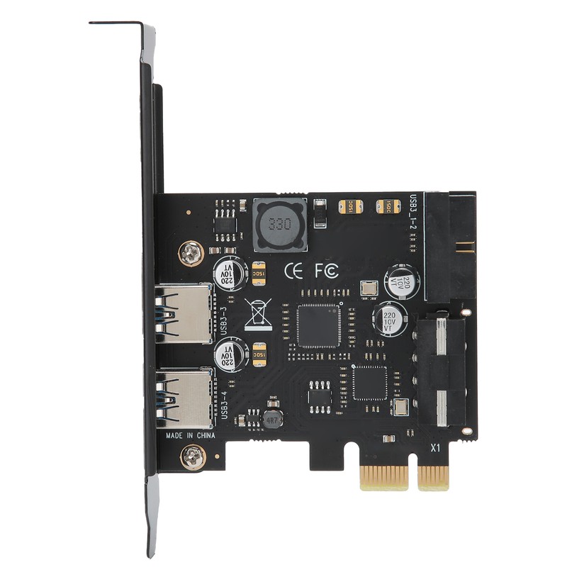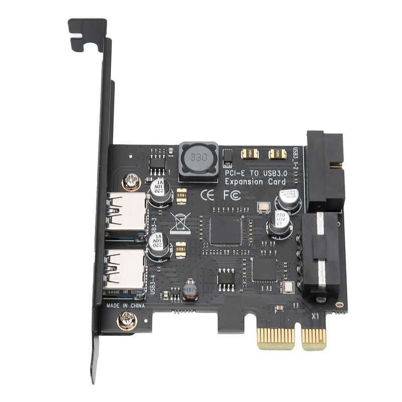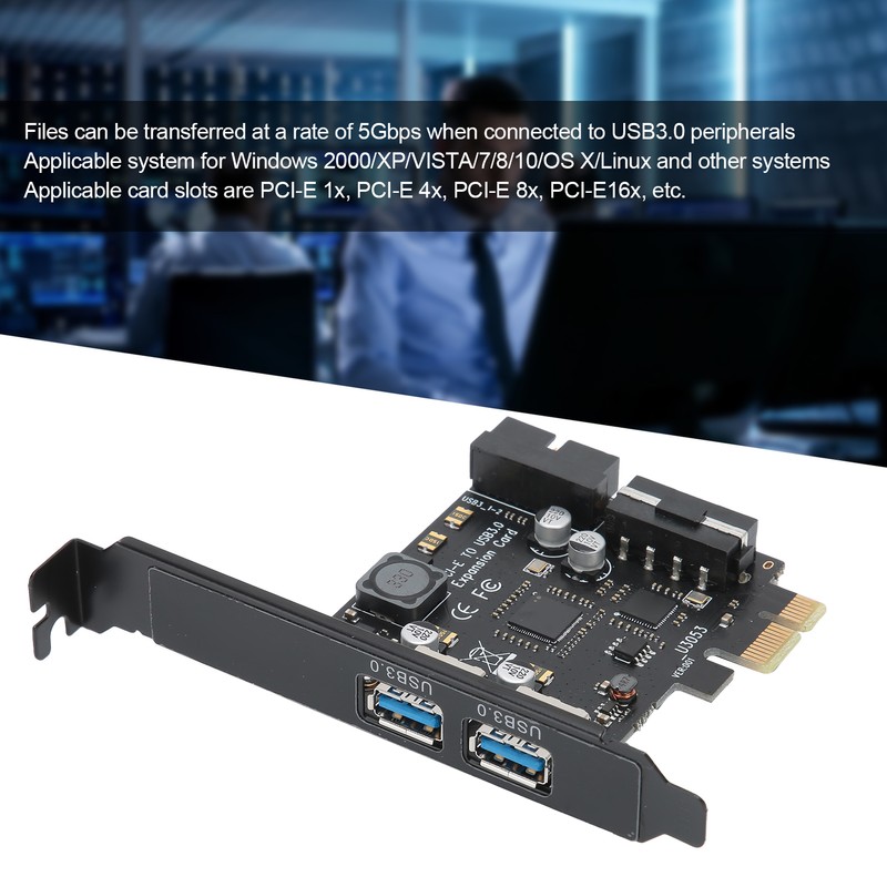 1、PCI Express card with 2 USB3.0 interfaces, which complies with PCI Express system specifications. 2、Files can be transferred at a rate of 5Gbps when connected to USB3.0 peripherals. 3、Support USB hot plug and plug play function, support any USB device including U disk, USB external hard disk, MP3, external optical drive, digital camera, camera, etc. 4、Applicable card slots are PCI‑E 1x, PCI‑E 4x, PCI‑E 8x, PCI‑E16x, etc. 5、Applicable system for Windows 2000/XP/VISTA/7/8/10/OS X/Linux and other systems
