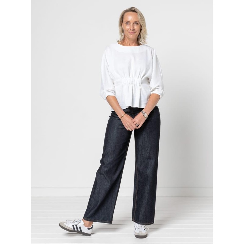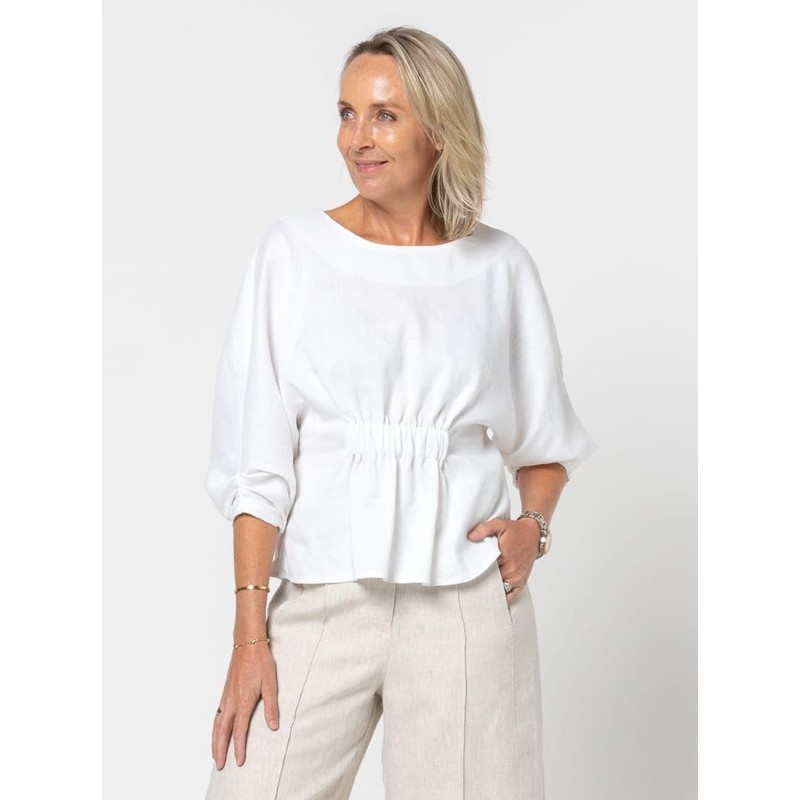 The Harry Woven Top and Dress is a gorgeous sewing pattern style from Style Arc. Harry can be made as a dress or top and features an elastic feature on the bodice as well as dolman sleeves with tucks and an elastic opening. Further features include: Slight "A" line shaped dress with below knee length, cut line on pattern at the hip for the top version, option of a round neck or a soft "V" neck, back-neck split opening with loop and button, above waist encased elastic on the front and back body. FABRIC SUGGESTIONS: Linen, rayon, silk, crepe. FABRIC ESTIMATE (for dress version): Fabric Width - 148 cm (58 in) > Sizes 4 - 18: 2.4 m (2.6 yd) > Sizes 20 - 30: 2.6 m (2.8 yd). FUSE ESTIMATE (Fabric Width - 90cm or 36"): > All sizes - 0.35m (0.38yd) TRIMS: > 1 x button for back neck - 10mm (16L) size > Elastic for body - 39mm (4") wide > Elastic for sleeves - 12mm (1/2") wide.