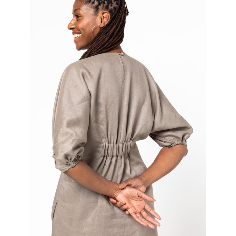 • This is a dress or top sewing pattern from Style Arc. This gorgeous style features a Dolman sleeve with tucks and elastic opening, a slight A-line dress with a cut-line at the hip for the top version. Make it in linen, rayon, silk or crepe.