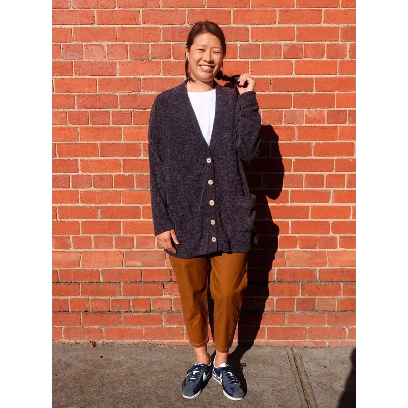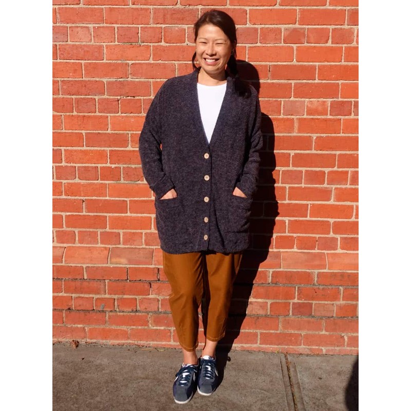 This is a women's cardigan sewing pattern from Style Arc. This trendy oversized cardi has a dropped armhole and slim sleeves. The large patch pockets finish off this fashion forward cardigan. Use lovely big snaps on the front closure to set this style apart! FABRIC SUGGESTION: Any knit suitable for a cardigan. TRIMS: 5 x snaps or buttons. FABRIC ESTIMATE (WIDTH 148 cm / 58 in) > Sizes 4-12: 180 cm (2 yd) > Sizes 14-30: 225 cm (2.5 yd).