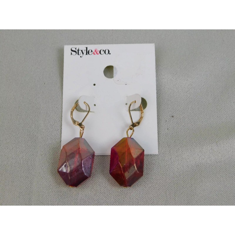 Style&co. Style & Co. Gold-Tone Faceted Red Glass Bead Drop Dangle Earrings #1355