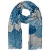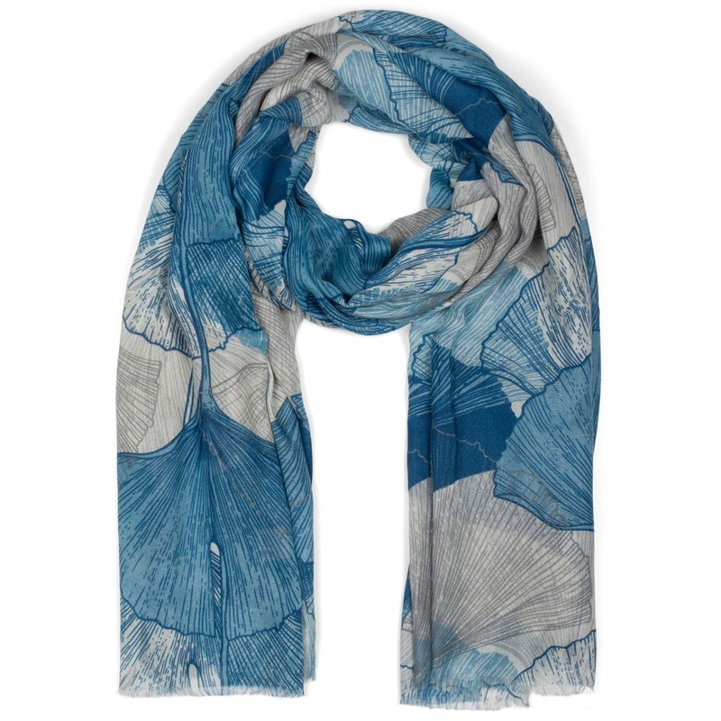 styleBREAKER 01016208 Women's Scarf with Coloured Ginkgo Leaves Pattern Print and Short Fringes, Lightweight Scarf, Stole, blue-white