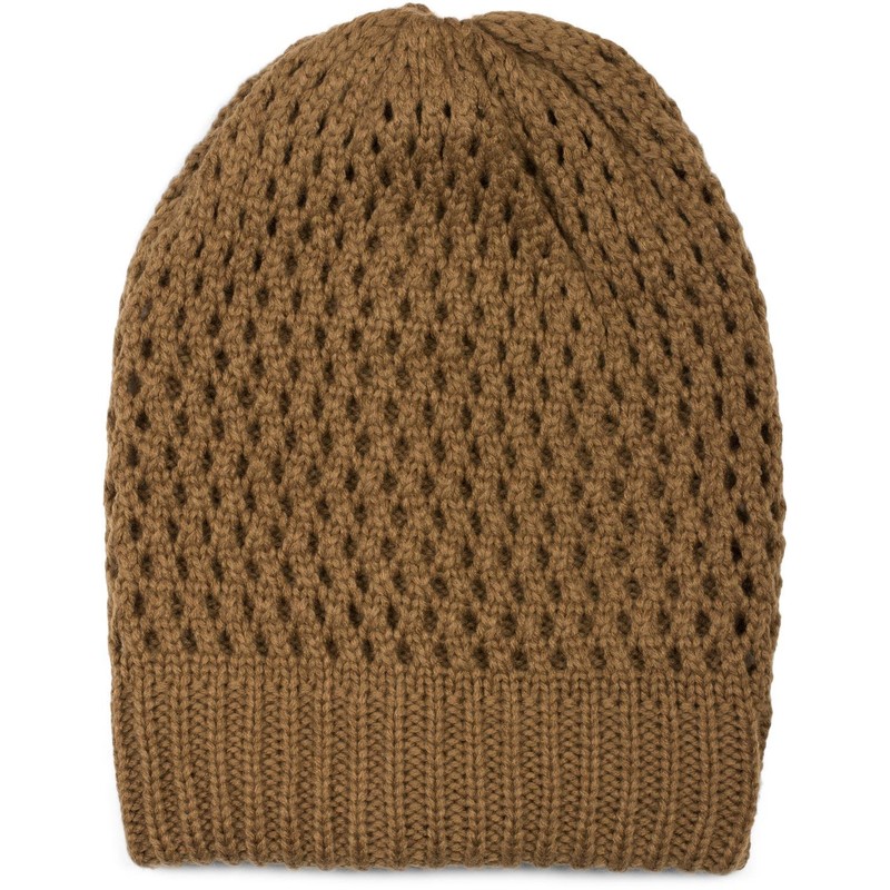 styleBREAKER knit loop scarf and hat set, hole pattern knit scarf, knitted beanie hat, winter, unisex 01018210, color:Cognac