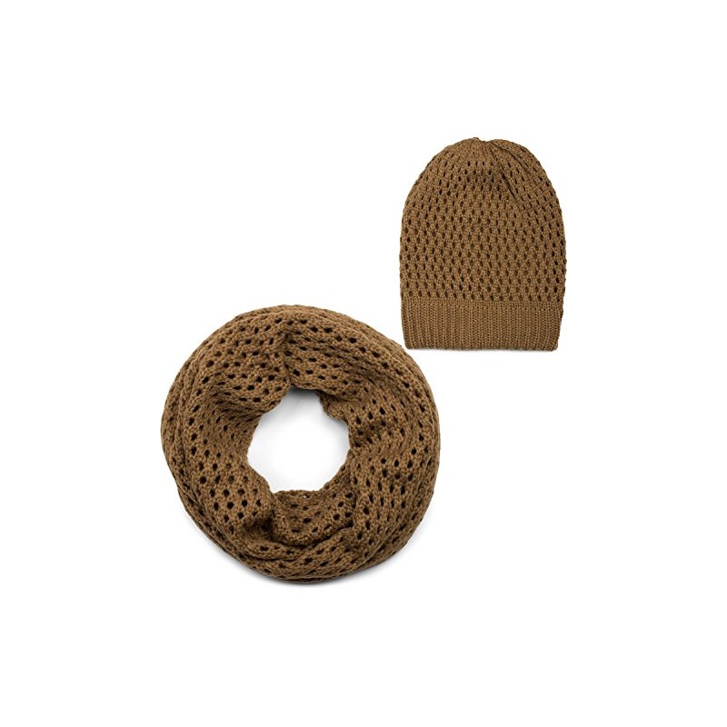 - Classic large and warm hole knit loop scarf with beanie hat.