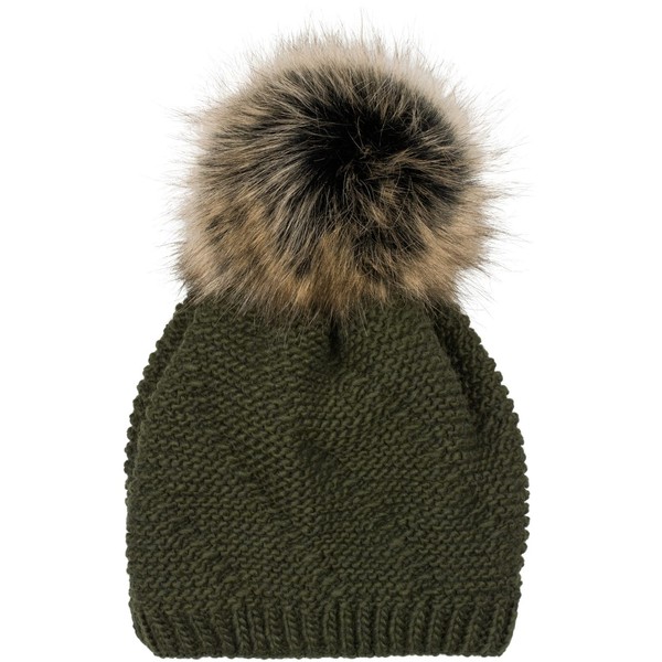 styleBREAKER warm plain faux fur bobble knitted hat with fine diagonally broken knitting pattern, thermal fleece lining and fake fur bobble.