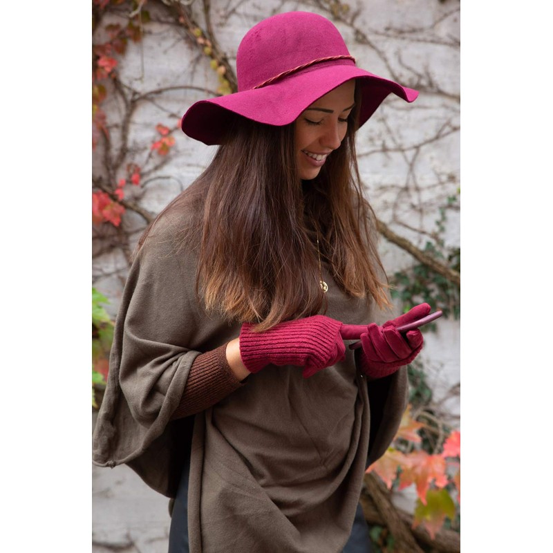 styleBreaker Women's Touchscreen Fabric Gloves with Removable Knitted Cuffs, Warm, Winter Finger Gloves, 09010022 - black