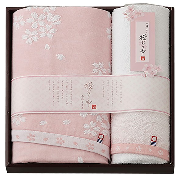 Stylem Takisada-Osaka Imabari Towel, Cherry Blossom Cloth Towel Set, Gift, Set of 2, Bath Towel x 1, 23.6 x 47.2 inches (60 x 120 cm), Face Towel x 1, 13.0 x 31.5 inches (33 x 80 cm), Cherry Blossom