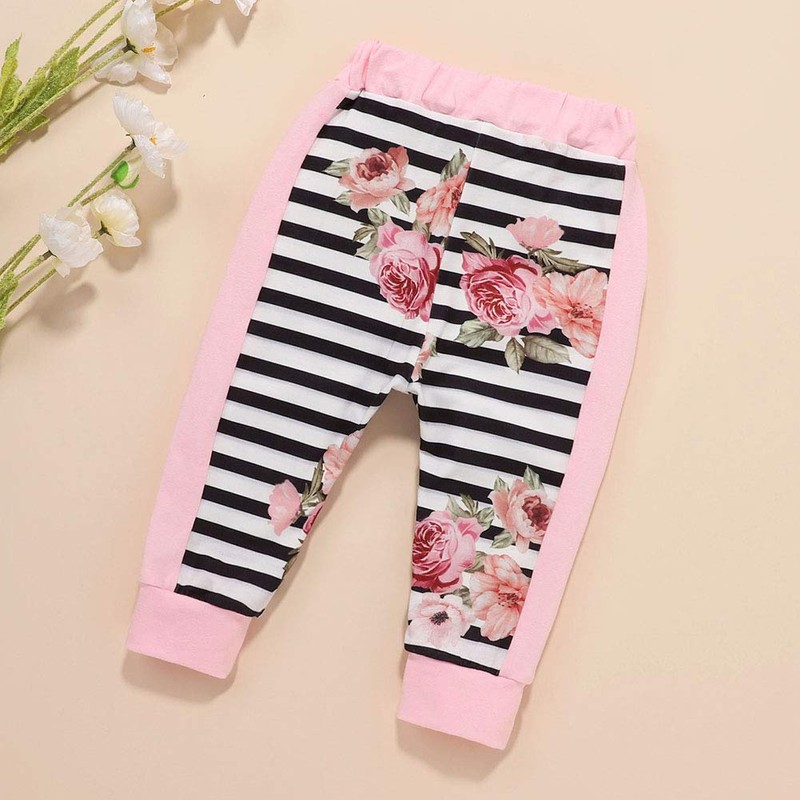 - DESIGN — This three-piece baby outfit includes a pull-on long-sleeve top in pink with reads "Daddy's Little Princess" that adds extra sweet flair while attractive flowers and striped printed on the sleeves. The pants come adorned with pink and matching floral motifs and an elastic waistband for a secure fit. The floral headband adds the perfect finishing touch to her outfit. Simply pair this set together, or mix and match with other pieces from her wardrobe for versatile styling options