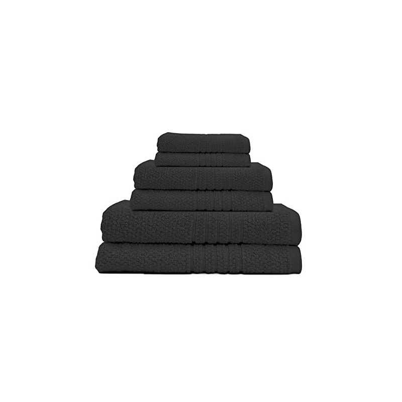 Stylish 6 Black Cotton Bath Towels, Ultra-Plush Texture, Ribbed Style Border,...