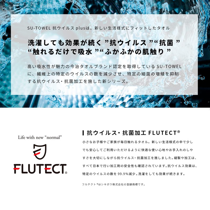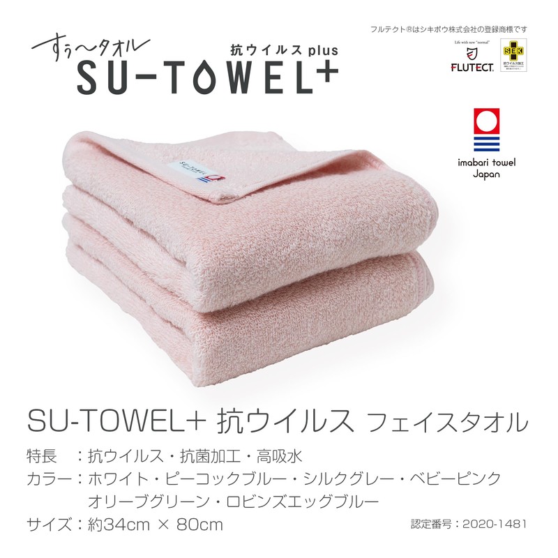- SU-TOWEL+ is a towel series that has acquired Imabari Towel Mark certification, with an anti-virus and antibacterial treatment that lasts even after washing. All sewing and processing are done in Japan and we have checked the safety of processing agents. After washing, shake it slightly and stand the pile and then dry it to dry. The fluffy volume will last for a long time