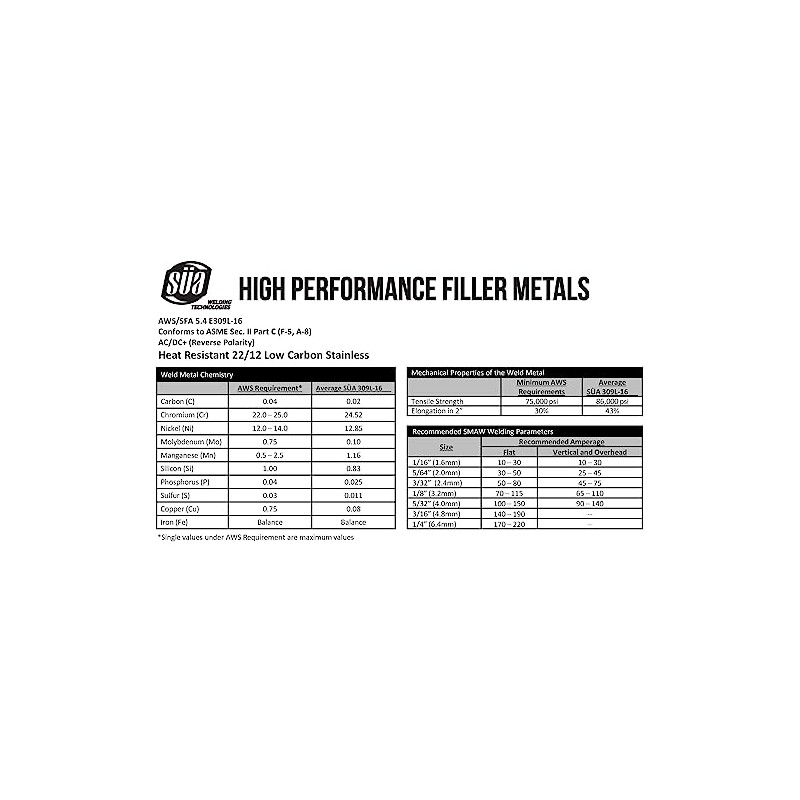 • The low carbon content of this electrode (0.04% C) preserves the intergranular corrosion resistant properties of the weld deposit and ensures a higher ferrite content than standard 309-16; most 309L-16 weld deposits are greater than 8 FN.
